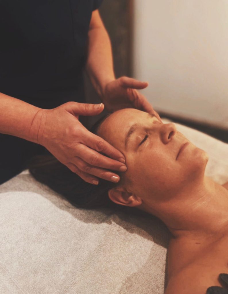 - Facial massage techniques that relieve tension in the face, jaw, and scalp